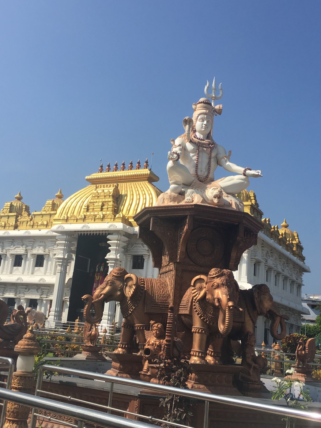 Inspired by this event and being very close to his ashram in Coimbatore we decided to venture by train there. The Isha Center is beautiful. I spent two days there. There is a Suraya and Chandra Kund, (women bathe in the Chandra Kund), a Bharavi Temple, the huge Adiyogi bust, as well as a meditation hall with Shiva Lingam. On the last day there I wanted to dip in the Chandra Kund and went right before it closed as we were making offerings in the day to each temple. I was the only woman there! That was an inspiring highlight! The tall roof has a magnificent mural. There is a water fall and a Shiva Lingam in the kund. When I went earlier in the day there were many many women.